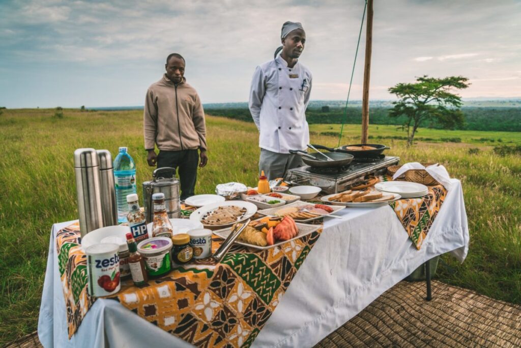On many Uganda safaris, the day begins with anticipation. Depending on your itinerary, your morning might involve early drives to gorilla trekking areas, chimp tracking zones, or scenic routes where wildlife sightings happen at a slower, steadier pace. In those early hours, bush breakfasts are designed to keep you comfortable and energized—warm beverages, light pastries or toast, fruit, and hearty options that won’t leave you feeling heavy during the day’s activities.